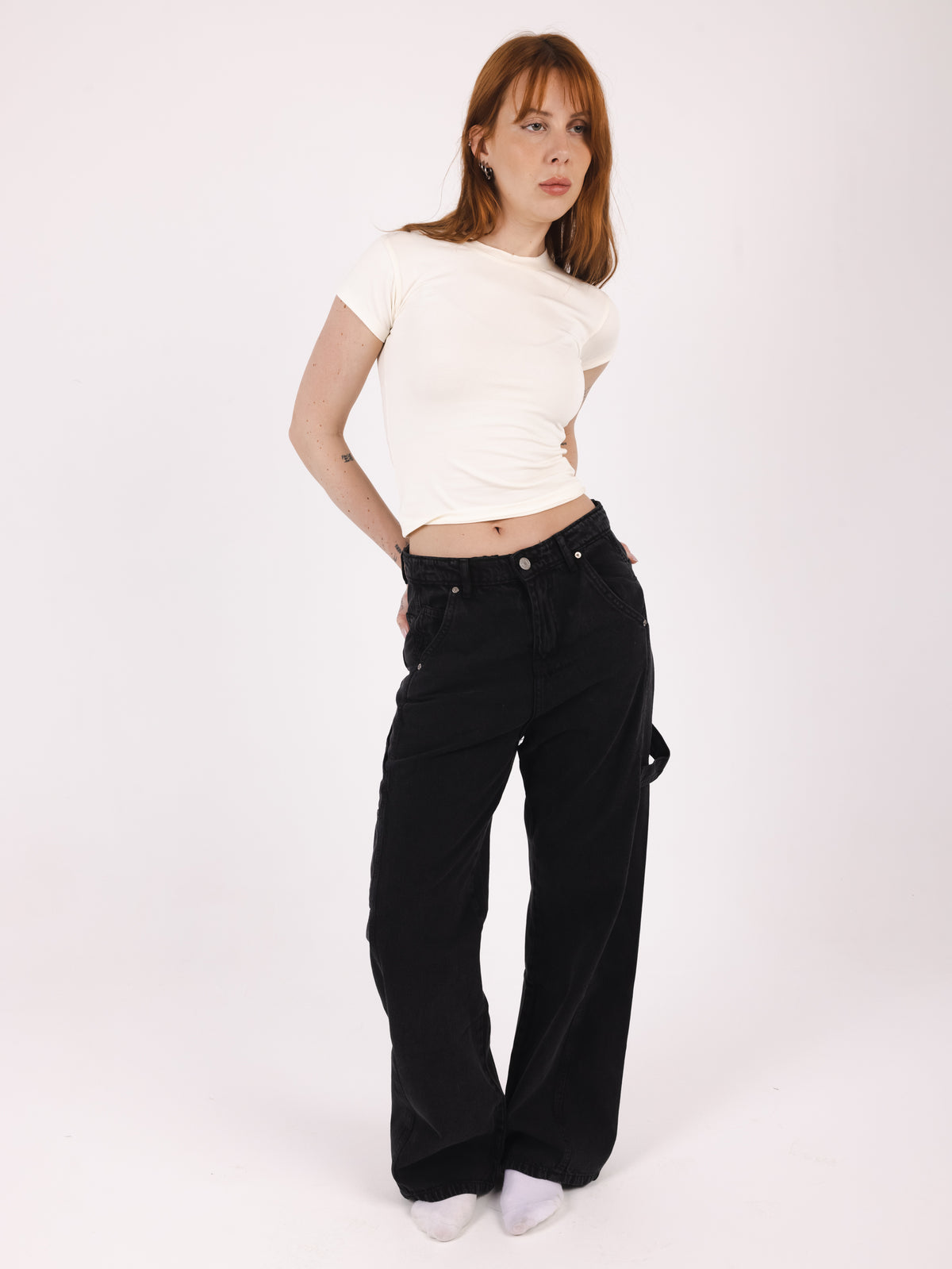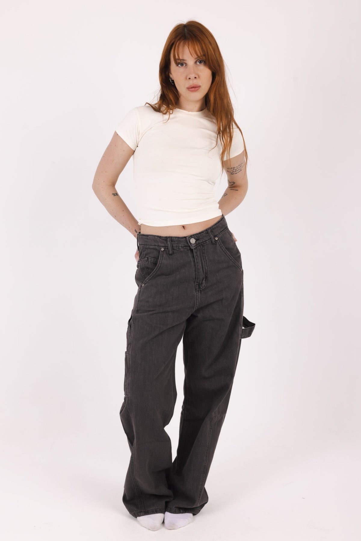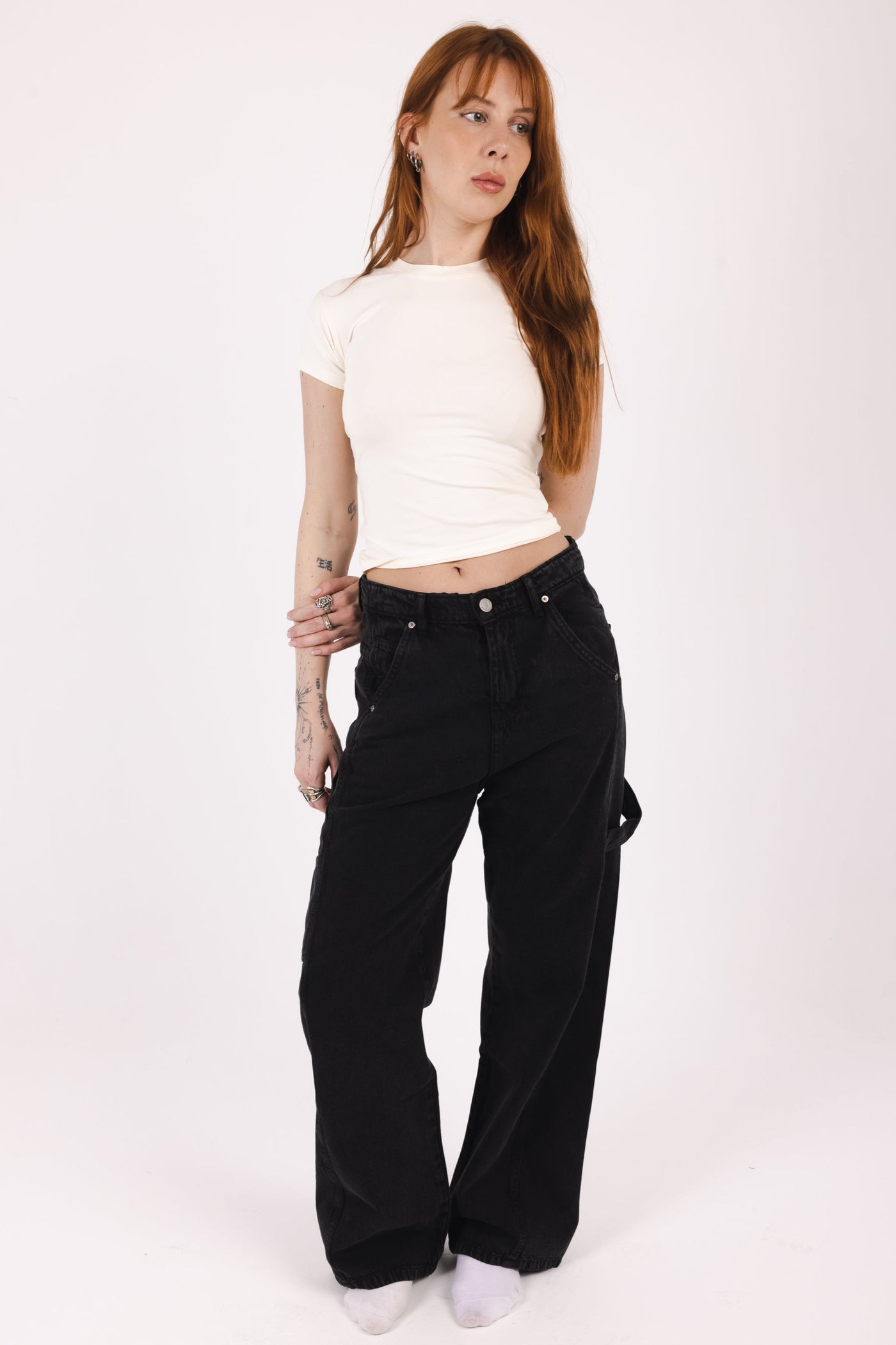 Utility-inspired carpenter jeans with a relaxed fit and practical side pockets, crafted from durable black denim for effortless style and functionality.