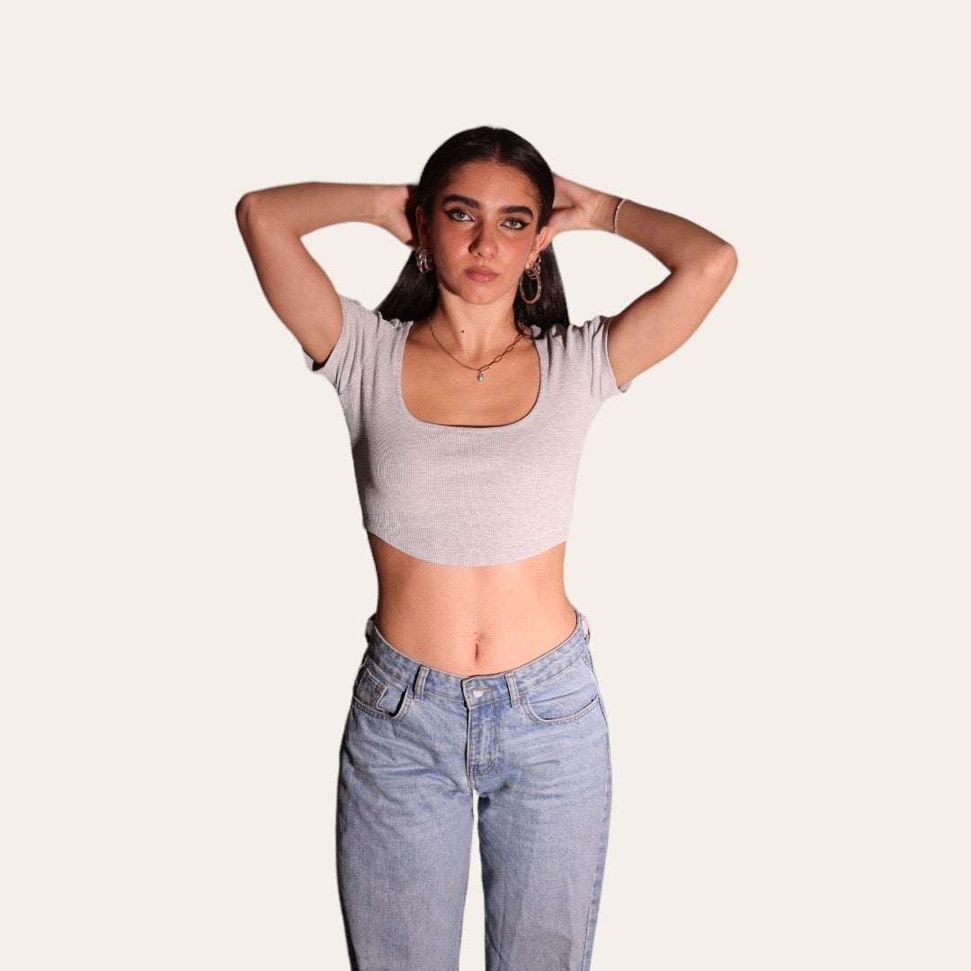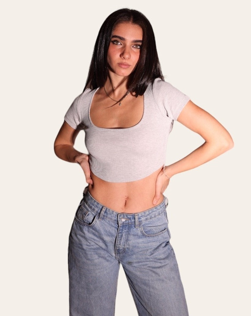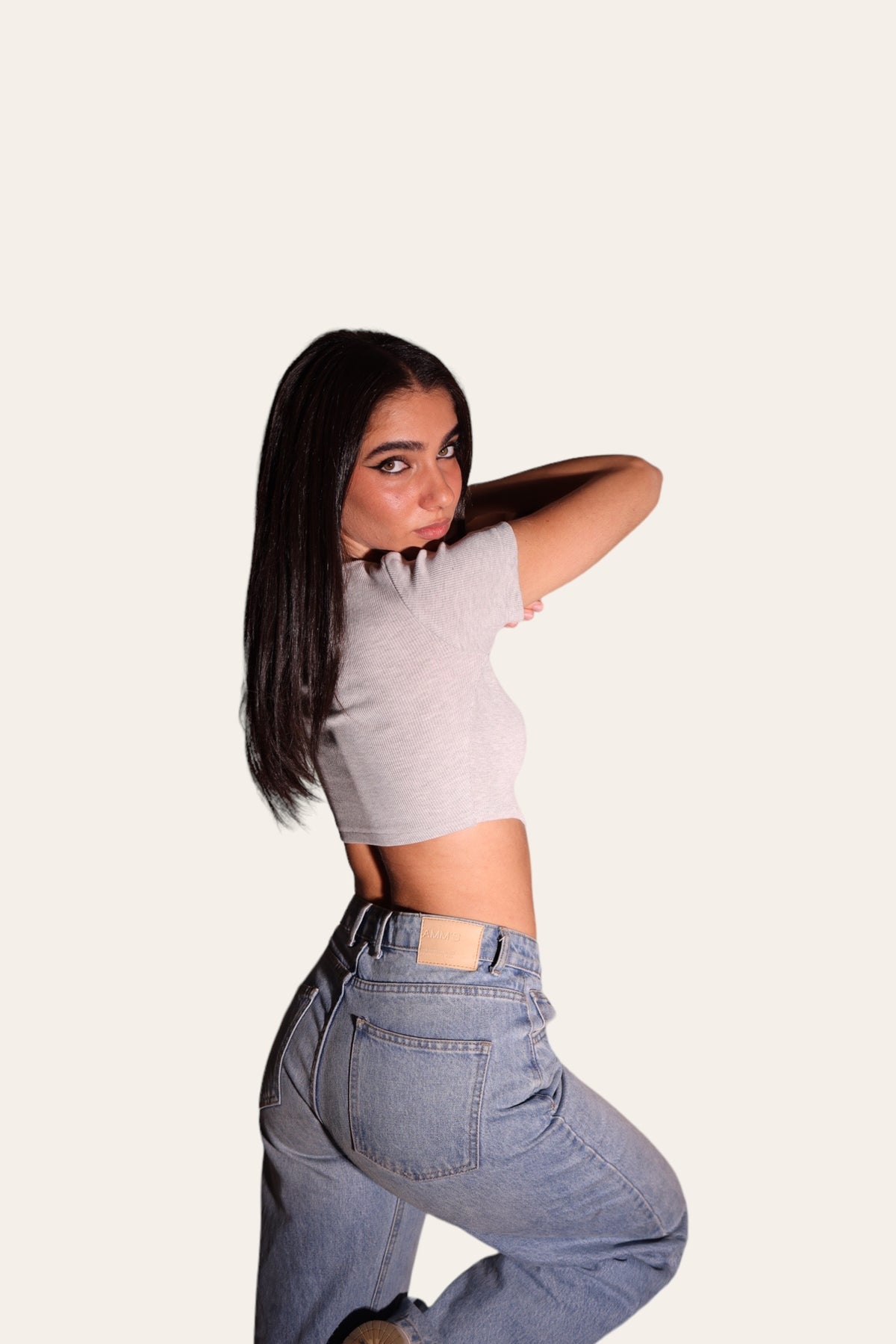 This Basic Ribbed Half Sleeve is the perfect wardrobe essential. Crafted with a ribbed material, it's comfortable to wear while also being stylish. The model is wearing a size small.