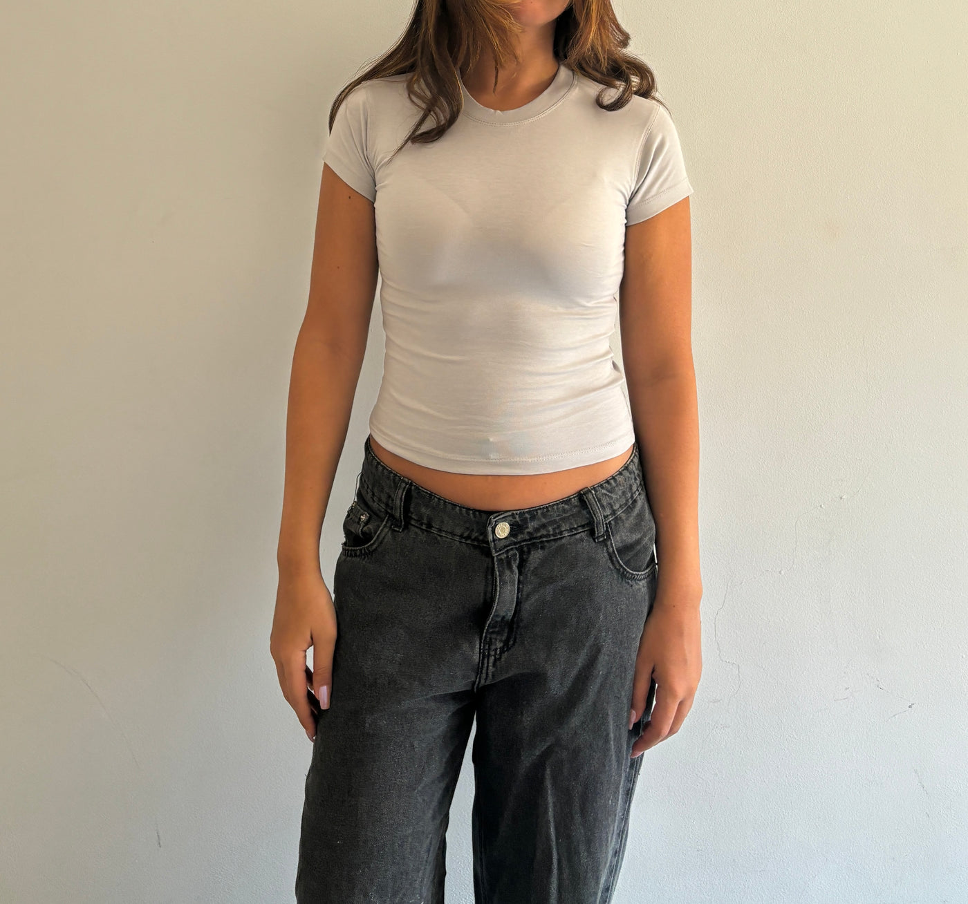 Fitted Half Sleeve Top - Light Grey / S